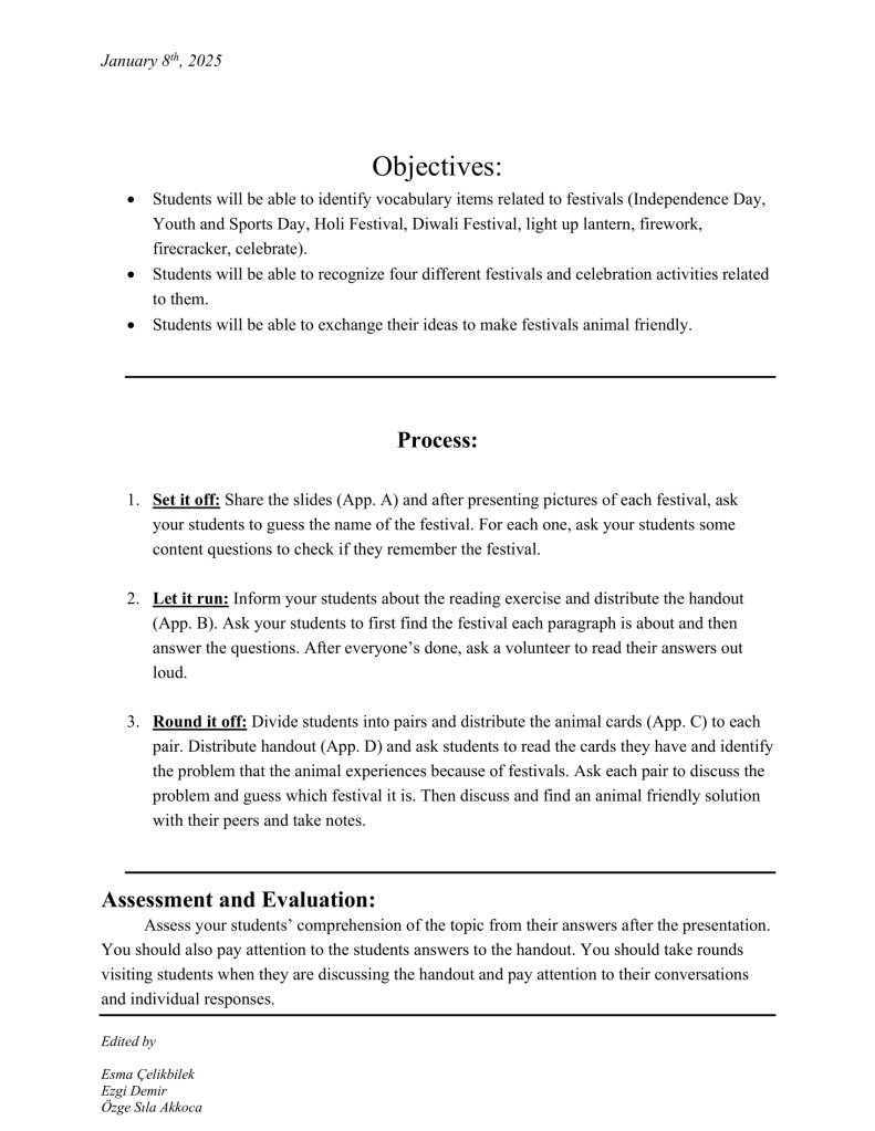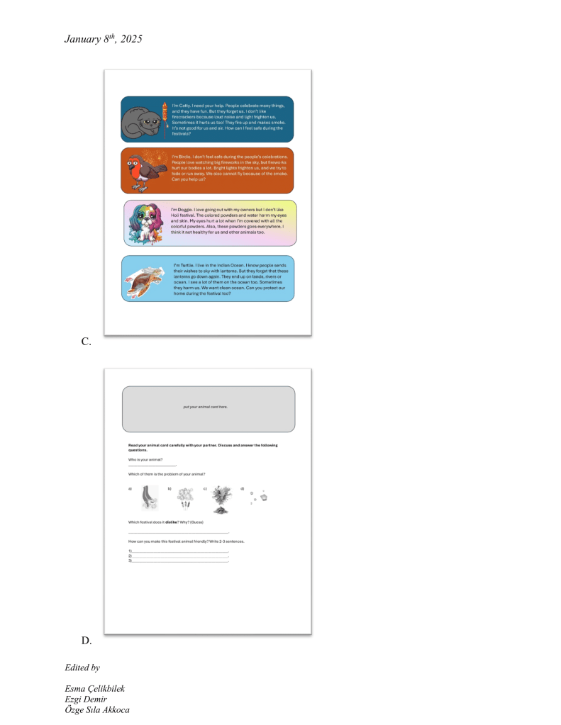 Planning a lesson about festivals with 5th graders, I wasn’t sure how to help them see beyond just learning English or the names and vocabulary of festivals. As a bird lover, I saw a chance to talk about how festivals can harm birds and other animals. I kept my language as simple as possible despite this deep topic, unsure how they would respond given language barriers and their current perspectives. To my surprise, the students engaged deeply, having thoughtful discussions and sharing amazing ideas on how some common celebrating practices inevitably harms animals and their habitats. Visiting each group, I saw how much they understood and cared about animals and develop creative solutions. By the end, I felt proud and inspired—it was far more meaningful than I imagined! Now I see how language teaching goes beyond its traditional meaning and creates spaces for students to think critically, question their perspectives, and develop empathy, which further supports their language learning experience.