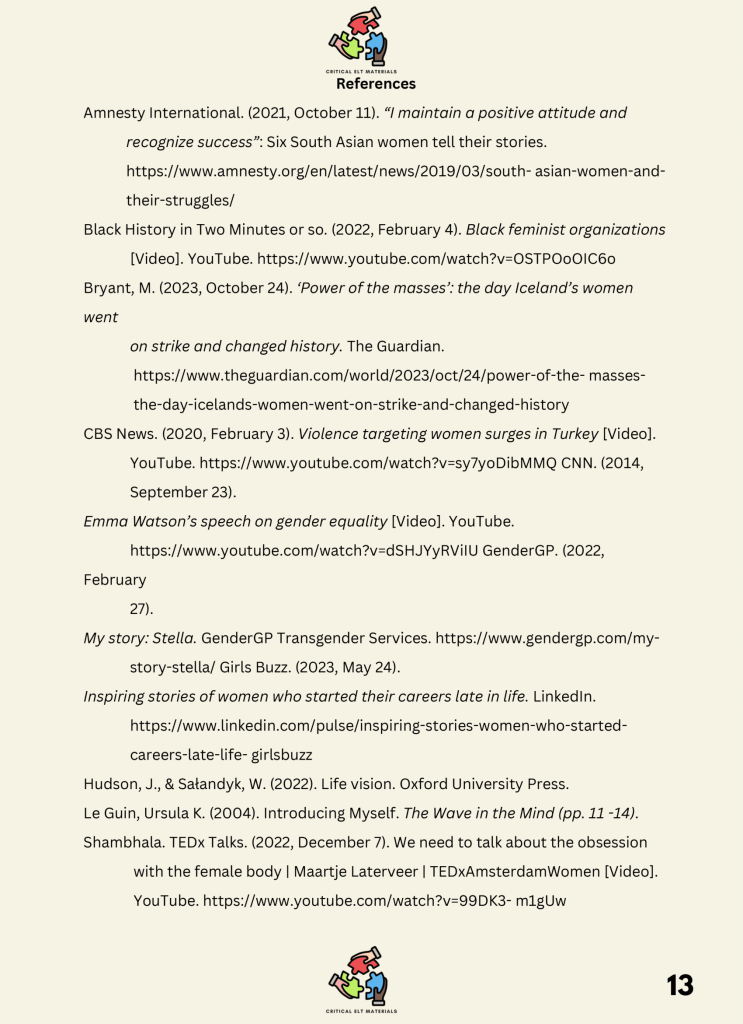 As part of my Community Service course, I worked on redesigning an English teaching material focused on gender equality and feminism and made it publicly accessible through a digital platform. This project allowed me to explore the intersection of education, technology, and social awareness, ensuring that the content was both linguistically enriching and socially relevant. By integrating discussions on gender equality into language learning, we aimed to foster critical thinking and inclusivity while making the resource widely available. This experience enhanced my skills in digital content development, collaboration, and inclusive teaching, reinforcing my belief in the power of education to drive social change.