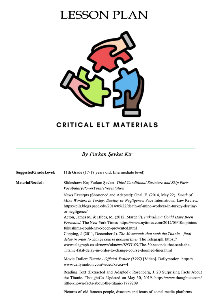 Critical ELT Materials is a platform that shares critical language education tools prepared and edited by pre-service teachers of English studying at the Middle East Technical University in Ankara, Turkey under the supervision of Dr. Yasemin Tezgiden-Cakcak with the global community of critical language educators. The language education tools (lesson plans and units) we share on this website aim to raise critical consciousness in language learners while teaching English communicatively, contextually and creatively (aiming to achieve 4C). This site is designed and administered by İsmail Efe Top.